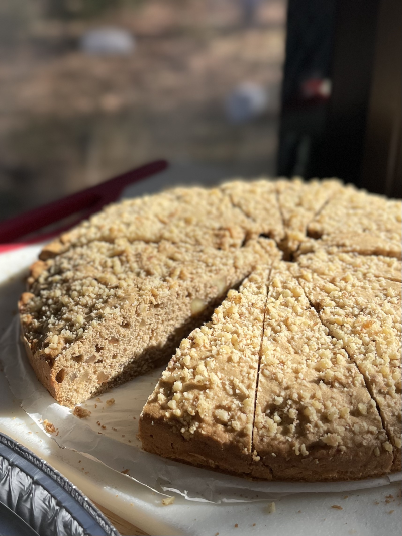 Vanilla-espresso cake decorated with mascarpone whipped cream